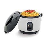 Take the guesswork out of making restaurant-quality rice at home with this easy-to-use rice cooker and steamer. The handy appliance offers a generous 10-cup rice capacity--great when cooking for a large group. Simply add dry rice, measure in the water, and turn the unit on. Once the rice has cooked, the appliance automatically switches over to "keep warm" mode, which maintains an ideal serving temperature without over-cooking. The cooker can also be used to prepare dishes such as pasta, risotto, jambalaya, and more. In addition, the unit's removable lid holds in heat and moisture, while its nonstick removable pot ensures effortless food release and easy cleanup. Other highlights include "cook" and "keep warm" indicator lights, a carrying handle, and a detachable cord. A measuring cup, serving spoon, and steaming basket come included. The rice cooker and steamer measures approximately 10 by 12 by 10 inches.