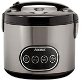 Aroma Stainless Steel Rice CookerProduct Description: This digital rice cooker from Aroma makes perfect rice, soups, stews and even steams meat and vegetables simultaneously. It flawlessly prepares up to 16 cups of any type of rice with a water reservoir that channels away excess condensation. With multiple functions that include automatic keep-warm, brown rice and steam, it's the perfect addition to any busy kitchen. It's finished in smudge-proof stainless steel with black accents that complement any kitchen's style. Includes a measuring cup, a steam tray and a serving spatula.